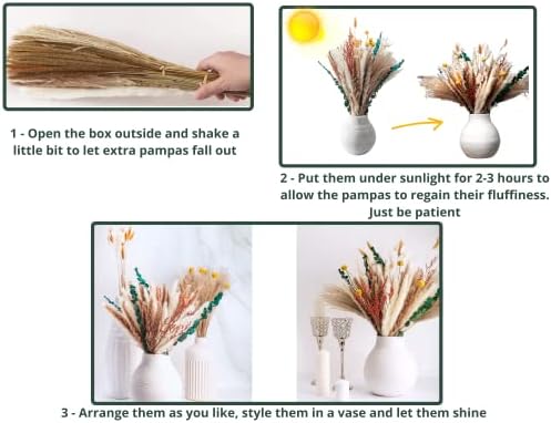 WIDE RANGE OF USES: Embrace the hot pampas grass decor trend and elevate your wedding decoration, dried floral arrangements, boho home decor, bedroom, living room, dining room and boho vases for pampas grass, etc. With natural colors, our dried flowers bouquet blends with your rustic home decor or farmhouse decor. Our dried pampas grass decor for wedding gifts, Halloween, Thanksgiving, Christmas, etc.