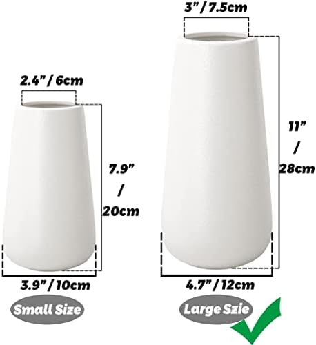11 Inch Tall Matt White Ceramic Vases for Flowers & Pampas Grass, Classic Rustic Style Decorative Vase for Home Decor Table Centerpieces