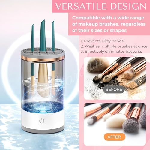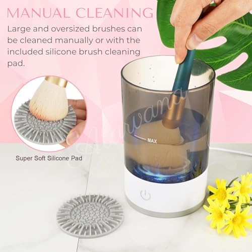 【Electric Mode & Manual Mode Avaliable】Deep clean regularly with a makeup brush cleaner. It has electric and manual available modes, you can choose the automatic mode to clean multiple brushes at the same time, or the hand-held cleaning mode to clean. Also, our cleaner comes with a silicone cleaning pad for cleaning stains that are difficult to clean or have been stained for a long time.