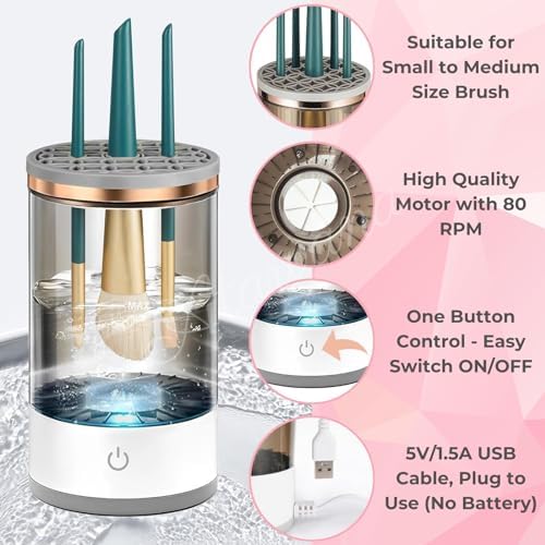 【2 In 1 Makeup Brush Cleaner & Holder】Are you still bothered by dirty makeup brushes? Just have a look at Atarvana 2-in-1 makeup brush cleaner. To free up hands, we’ve introduced this hassle-free electric cleaning brush, so you can clean your used makeup brushes anytime. Not only can it be used as Makeup brush cleaner Machine, but it can also be used to place makeup brushes after cleaning, so that they do not stick to dust.