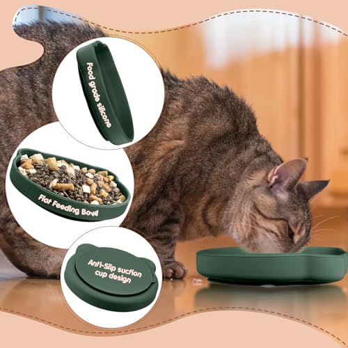 2 Pack Cat Bowls, Non Slip Silicone Cat Food Dish Feeding Drinking Bowl Shallow Pet Bowl for Dry Food and Wet Food Feeders Station for Puppy Small Dog Kitten Food Bowl(Green&Brick-red)