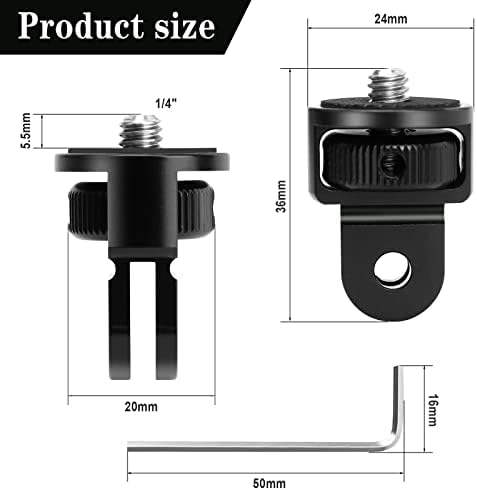 Practical Camera Adapter: our tripod adapter has a standard 1/4 inch 20 threaded screw. It can be suitable for most camera brands such as GOPRO, Xiaomi, Xiao Yi, Sony, JVC, etc. You can use it for a variety of 1/4″ sports cameras, digital cameras, video recorders or 1/4″ accessories etc.