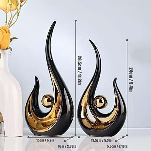 2 PCS Black Ceramic Decor,Black and Gold Decor for Bedroom,Home Decor Modern Abstract Art Ceramic Statue for Living Room Office Dining Room,Black and Gold Centerpiece Table Decorations for Dining Room