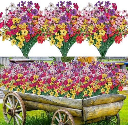 20 Bundles Artificial Flowers for Outdoors UV Resistant No Fade Fake Plastic Flowers Decoration Faux Plastic Greenery Garden Indoor Home Yard Kitchen Office Wedding Porch Window Box Decor (Mix)