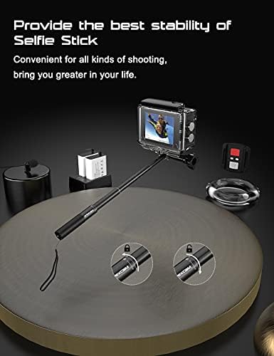 📷【2.4G Remote Control & Accessories Kit】: By connecting WiFi with 2.4G remote remote shooting, the remote control range is up to 15 meters,There are 20 additional accessories, including a selfie stick, two rechargeable batteries, helmet accessories, etc.