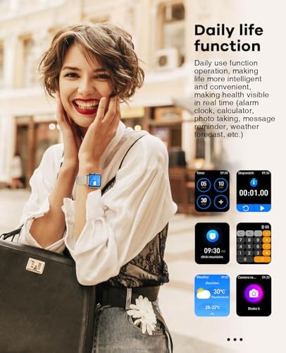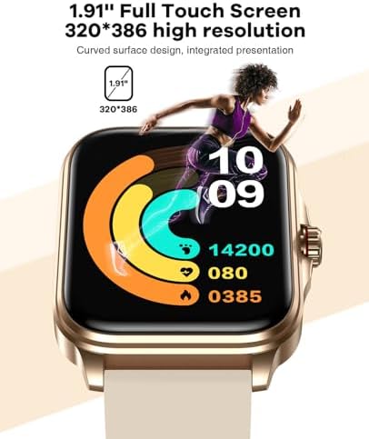 🎁【Humanized interface and rich functional design】: The smart watch has a 320*386 HD 1.91-inch full-touch large screen, providing an immersive visual experience. An intuitive interface ensures easy navigation and interaction with watch functions. It also includes a series of convenient functions such as music control, multi-dial switching, silent alarm clock, social sharing function. Plus, enjoy handy tools like a calculator, stopwatch, flashlight.