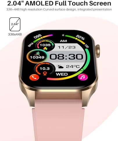 2024 Smart Watch for Women, 2.04-inch AMOLED Display, Infrared True Blood Oxygen Monitor, Heart Rate Blood Pressure Sleep, IP68 Waterproof Fitness Tracker, Compatible with Android iPhone iOS Pink