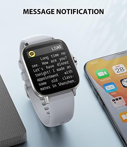 🎁【More Practical Functions】The smart watch can receive SMS and text notifications (Instagram, Twitter, WhatsApp, etc.),* but cannot reply to messages. More useful functions, such as music control, weather, stopwatch, timer, alarm clock, flashlight, frequently used contacts, do not disturb mode. Compatible with all Android and Apple phones.We provide life time technical support and 12 months warranty. Please feel free to contact us if you have any problems, Find order—Contact seller