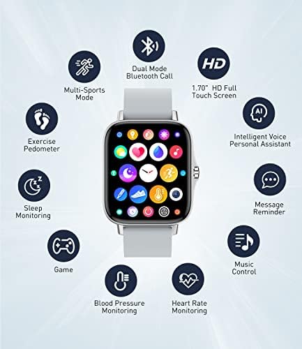 2024 Smart Watch for Women Men with Bluetooth Call, Fitness Tracking, 1.7-Inch HD Touch Screen with Heart Rate, Blood Pressure, Blood Oxygen, Sleep Monitor, Smart Watch for Android and iPhone Silver