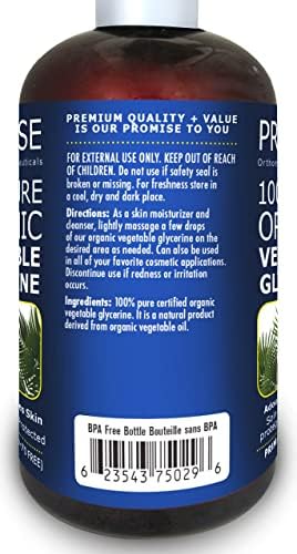 Directions: As a skin moisturizer and cleanser, lightly massage a few drops of our organic vegetable glycerine on the desired area as needed. Can also be used in all of your favorite cosmetic applications. Discontinue use if redness or irritation occurs.