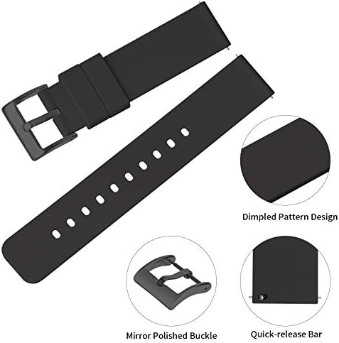 2PCS Silicone Watch Strap 20mm Quick Release – Black Soft Rubber Watch Band Replacement – Waterproof Military Style Watch Strap for Men Ladies – for Smart watch Strap Clasp Buckle