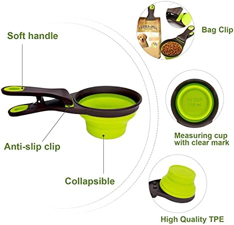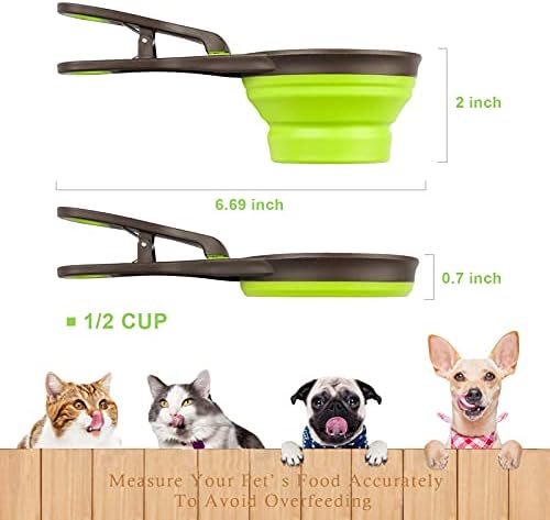 3-In-1 Dog Food Scoop with Bag Clip and Measuring Cup, Collapsible Pet Food Scoop for Cats, Dogs, and Small Pets – Cat Food Scoop Dog Food Scooper for Containers Green 1/2 Cup