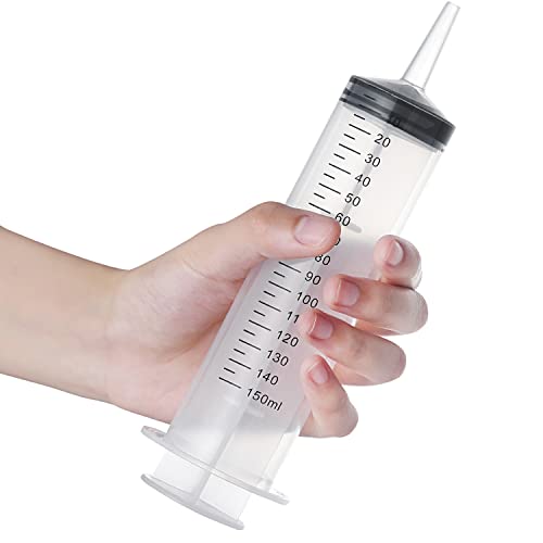 3 Packs 150ml Plastic Large Syringes Tools Without Needle with Storage Caps, Luer Slip Tip Syringe for For Medicine Animal Pet Water Feeding Refilling, Party Bashing, Oil or Glue Applicators, Science Experiments, Liquid Metering, Teaching Equipment, Student Experiments…