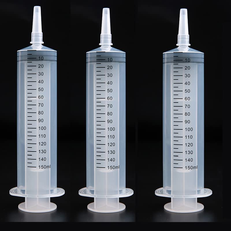 3 Packs 150ml Plastic Syringes Tools Without Needle with Storage Caps, Luer Slip Tip Syringe