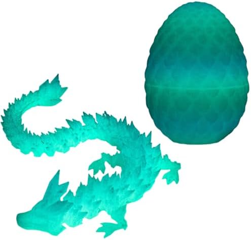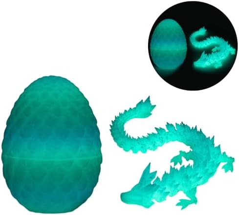 3D Printed Dragon Eggs Inside, Full Articulated Crystal Dragon Egg, Home Decor Flexible Joints Fidget Executive Desk for Adults Stress Relief Autism ADHD (Luminous)