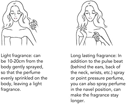 [Easy to use]: Let the perfume be about 10‑20 cm away from the body, spray the misty perfume, spray a wide range, and then stand in the fragrance mist.