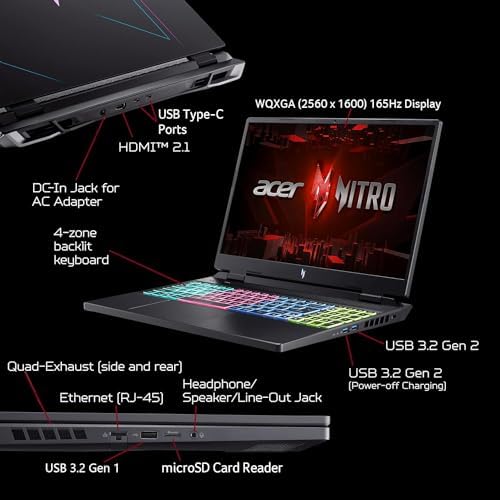 Acer Nitro 16 Gaming Laptop | Intel i5-13500H | RTX 4050 Laptop GPU | 16″ 2560 x 1600 165Hz IPS G-SYNC Display | 16GB DDR5 | 1TB Gen 4 SSD | Wi-Fi 6 | RGB Backlit KB (1 yr Manufacturer Warranty) (Renewed)