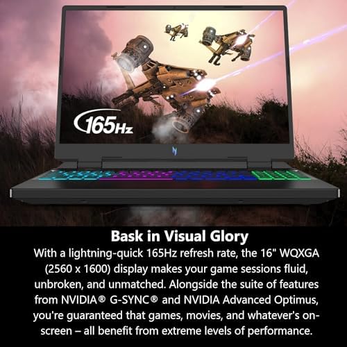 Picture-Perfect. Furiously Fast.: With a lightning-quick 165Hz refresh rate, the 16–inch WQXGA (2560 x 1600) display (with 84% screen-to-body ratio) makes your game sessions fluid, unbroken, and unmatched. Now you can land those reflexive shots with pinpoint accuracy and minimal ghosting.