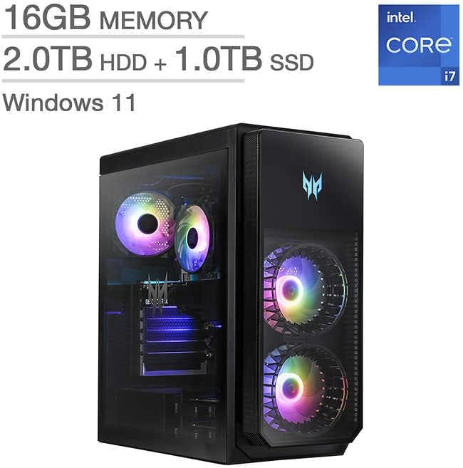Acer Predator Orion 5000 Gaming Desktop | 12th Gen Intel Core i7-12700F | RTX 3080 | 16GB DDR5 RAM | 1TB SSD | 2 TB HDD | Intel Wi-Fi 6E (1 yr Manufacturer Warranty) (Renewed)