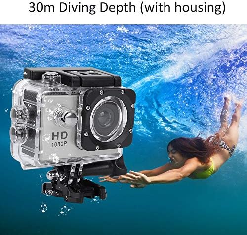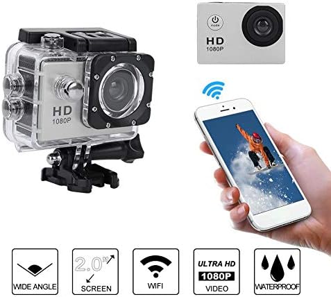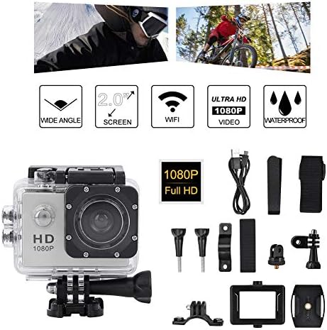Action Camera, 1080P 12MP HD WiFi 30M Waterproof Sports Camera 2 Inch Touch Screen with Accessories for Vlogging, Diving, Skiing(Silver)