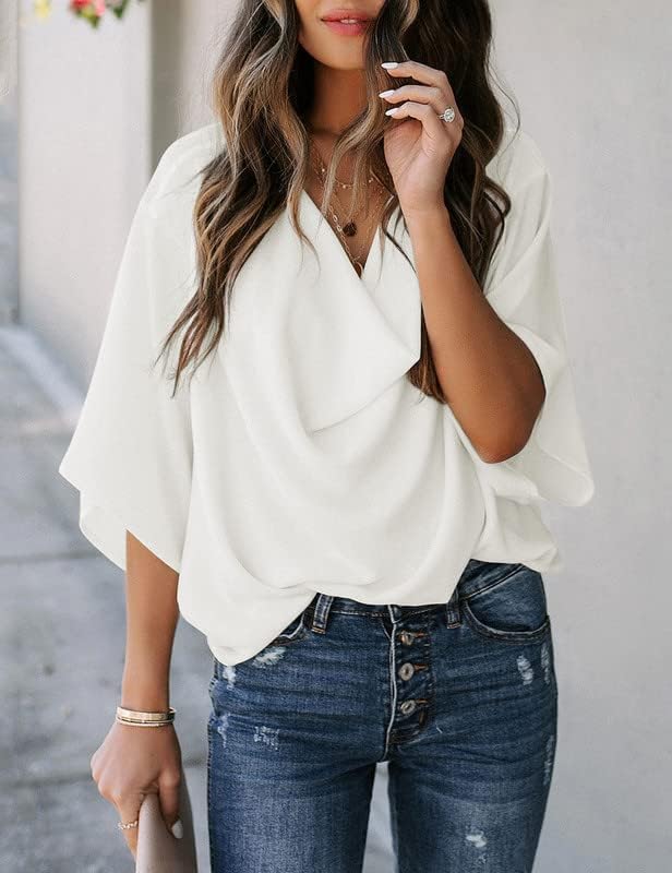 AILUNSNIKA Womens Summer Tops Half Sleeve Oversized Blouses for Women Casual Loose V Neck Bat Sleeves Tunic Shirt S-XL
