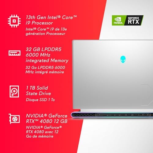 Alienware X16 R1 Gaming Laptop – 16-inch QHD+ 240Hz Display, Intel Core i9-13900HK, 32GB LPDDR5 RAM, 1TB SSD, NVIDIA GeForce RTX 4080 12GB GDDR6, Windows 11 Home – Lunar Silver