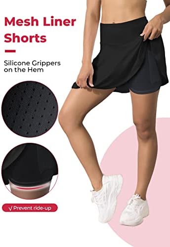 ALONG FIT Skorts Women with Not Ride Up Grippers, Tennis Skirt with 4 Pockets, Golf Skirt with Liner Shorts for Summer