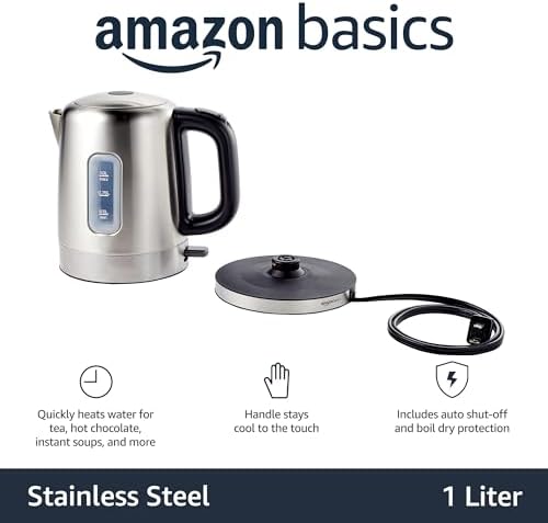 Amazon Basics Stainless Steel Portable Electric Hot Water Kettle – 1 Liter, Silver