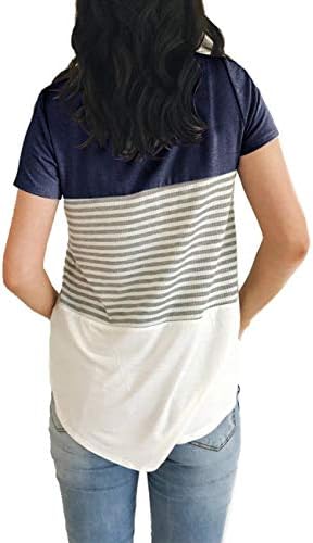 ANDUUNI Womens Summer Color Block Striped T-Shirt Short Sleeve Loose Tunic Blouse and Tops
