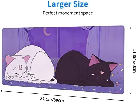 Anime Kawaii Gaming Mouse Pad Cute Cat Large Desk Mat XL Lavender Purple Extended Mousepad Gaming Desktop Mat Laptop Keyboard Mouse Mat Desk Pad 31.5×11.8in Non-Slip Rubber Base with Stitched Edges