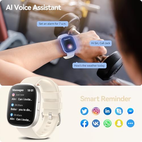 【Smart AI Voice Assistant & Versatile Wrist Tools】Smart watch for android iOS phones built-in voice assistants can help you quickly open voice navigation.Such as broadcasting the weather forecast, making calls, setting alarms. Equipped with more functions: Women’s Health, pedometer, weather, alarm clock, stopwatch, timer, music control, camera, find phone, calendar, calculator, etc, enjoy a more convenient and smarter life.
