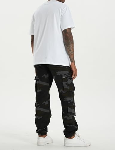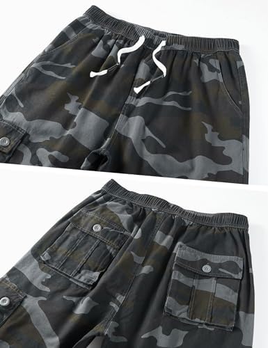 APTRO Men’s Cotton Casual Cargo Pants Multi Pockets Work Pants Outdoor Hiking Pants with Elastic Waistband