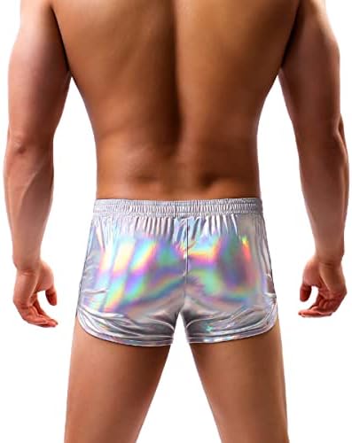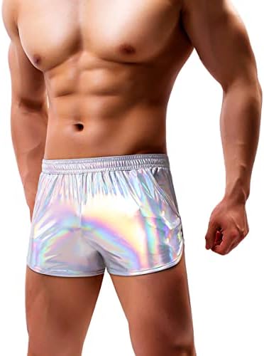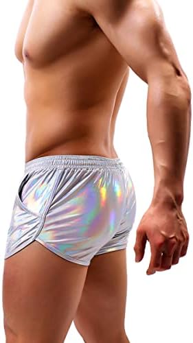 Arjen Kroos Men’s Sexy Metallic Shiny Shorts Sparkly Rave Hot Short Pants with Pockets