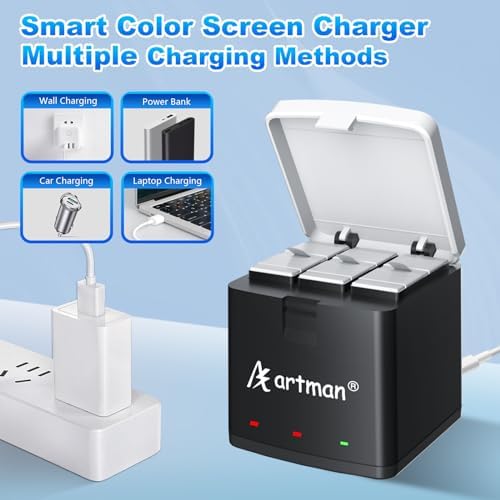Artman Hero 12 Battery 3-Pack 1800mAh and 3-Channel Charger Compatible with GoPro Enduro Hero 12 Black/Hero 11 Black/Hero 10 Black/Hero 9 Black Camera
