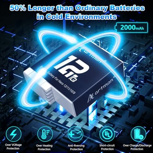 ⚡【100% Safe To Use】:The Artman hero 9 battery charger is made of high-quality, environmentally friendly materials that protect it from falls and scratches. The protection program includes overcharge protection, overcurrent protection, overvoltage protection, and short-circuit protection. It has passed UL, FCC, and CE safety certifications.