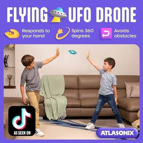 🛸 Infinite Play Possibilities – Atlasonix takes drone flying for kids to the next level with this unique magic flying UFO drone toy. Controlled with hand gestures this kids’ drone encourages hand eye coordination.