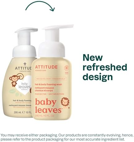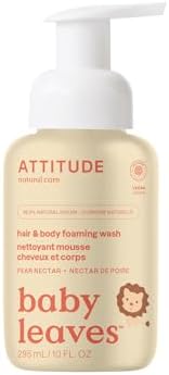 ATTITUDE Foaming Shampoo and Body Wash for Baby & Newborn, EWG Verified, Hypoallergenic Plant- and Mineral-Based Ingredients, Vegan and Cruelty-free, Pear Nectar, 295 mL