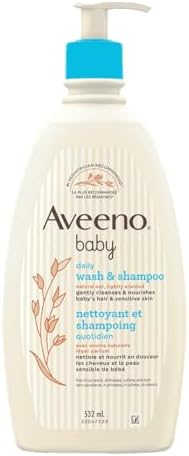 Gently cleanse, moisturize, and care for baby’s delicate, sensitive skin and hair with Aveeno Baby Daily Body Hypoallergenic Moisture Wash and Shampoo with Oat Extract. This daily moisture baby body wash and shampoo from Aveeno, the #1 pediatrician-recommended baby skincare brand, contains soothing, gentle ingredients, including natural oat extract, to cleanse your baby’s developing skin and hair without ever stripping or over-drying. When added to water, the two-in-one wash and shampoo has a rich, lathering formula that’s soap-free and hypoallergenic, so it is even gentle enough for daily use on newborns and babies with dry, sensitive skin. It also quickly rinses clean without leaving any skin-irritating residue behind to help keep your baby’s skin and hair looking and feeling clean, soft, and healthy. Aveeno Baby Daily Body Hypoallergenic Moisture Wash and Shampoo with Oat Extract contains no harsh ingredients, and is paraben-, sulfate-, phthalate- & phenoxyethanol-free with a soft, light fragrance so baby’s skin and hair smell clean and fresh. The baby wash and shampoo has a gentle, tear-free formula, so it won’t sting or burn if it runs into baby’s eyes, making it a great choice for baby bathtime. For your convenience, Aveeno Baby Wash & Shampoo comes in 236-millilitre, 354-millilitre, and 532-millilitre bottles.