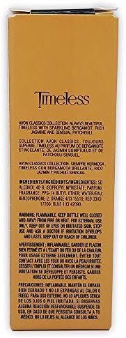 There is no woody fragrance more classic than Avon’s Timeless Cologne Spray. The eternal scent is a mystifying combination that lingers elegantly. It has top notes of fresh greens and sheer florals; and notes of jasmine patchouli, and vetiver; bare notes of amber, oakness, and musk. This floral perfume is great for daily use. Comes in a 1.7 fl. oz. bottle. BENEFITS This floral coloagne spray draws compliments from neighbors Be remembered forever with this Timeless perfume for special occasions TO USE Apply to neck and pulse points by spraying diffuser NOTES Top Notes: fresh greens, sheer florals Middle Notes: jasmine, patchouli, vetiver Base Notes: amber, oakmoss, musk