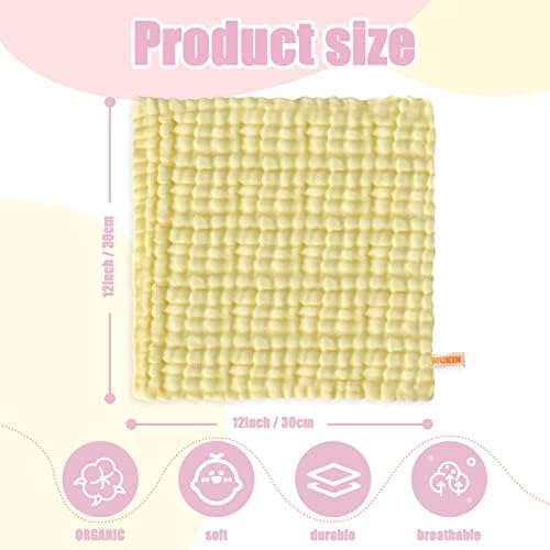 100% MUSLIN COTTON BABY WASHCLOTHS – Organic and all natural baby product. Hypo-allergenic, Larger Generous 12”x12” Size, Six-layer thicked, Machine Washable.