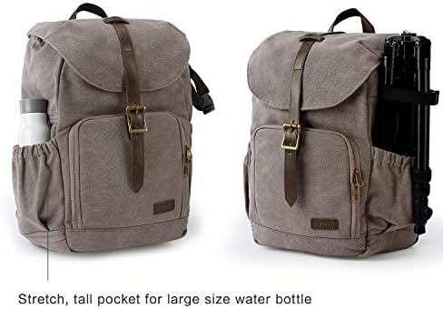 BAGSMART Camera Backpack, Water Resistant DSLR Camera Bag Canvas Bag Fit up to 15″ Laptop with Rain Cover, Tripod Holder