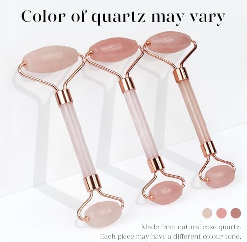 [Energized Skin] The at-home skincare face massager tool is made of rose quartz. The face & eye roller is sturdy and no squeaky. The massager roller is very smooth