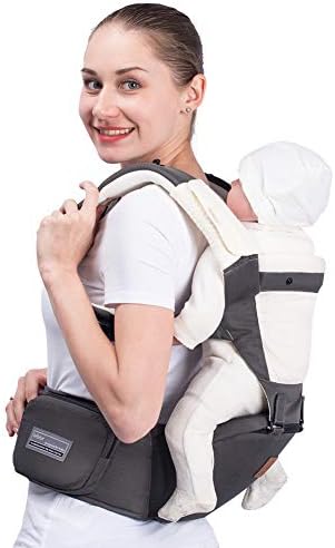 Bebamour Baby Carrier Front and Back Carry Baby Newborns to Toddler Baby Hip Carrier with 2 Pieces Teething Pads,Grey