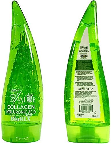BioRLX 99% Purity Aloe Vera Gel with Collagen and Hyaluronic Acid for Face, Body and Hair & Soothing, Moisture, Sun Burns, Anti Wrinkle, Anti Aging, Razor Bumps, Dry Skin (250ml)