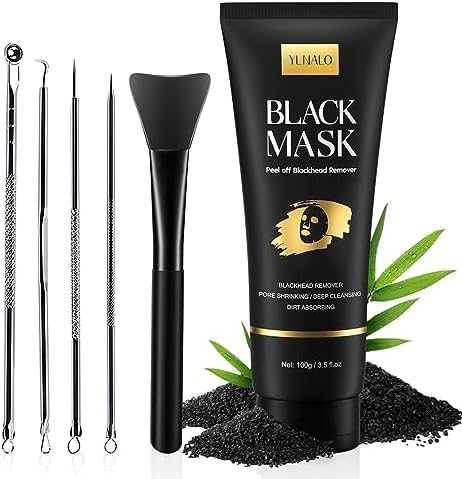 YLNALO Charcoal Peel off Blackhead Remover Mask + Blackhead Extractor Kit + Silicone Face Mask Brush