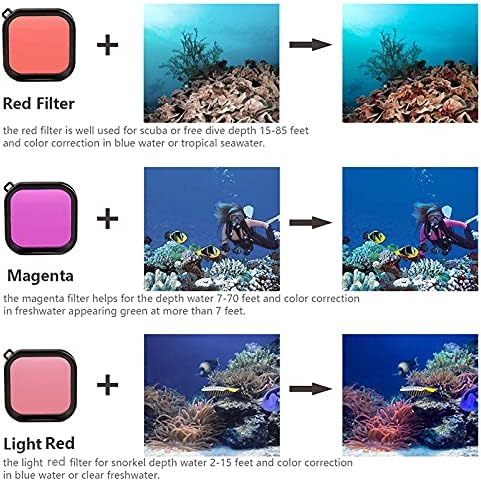 1 x Waterproof Case for Gopro Hero 12/11/10/9, 3 x Filters(Red / Purple / Light Red), 1 x Silicone Case,