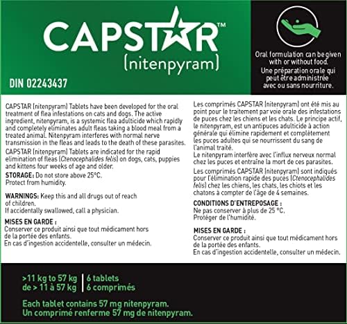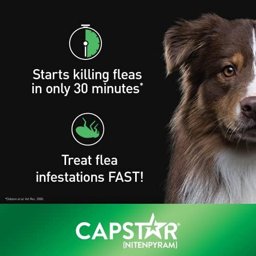 Capstar is a fast-acting flea treatment tablet for use in dogs that starts killing fleas in only 30 minutes. A single dose of Capstar kills 98% of fleas on the pet within 6 hours, and 100% of fleas within 24 hours. For continuous flea protection, use a monthly topical flea treatment like Advantage II. Dobson et al. Veterinary Record 2000.