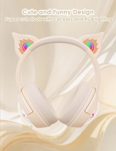 Cat Ear Bluetooth Headphones, Wireless RGB Cute Kitty Headsets, HiFi Stereo and Noise Cancelling Over-Ear Headphones for Gaming/Traveling/Music, Compatible with PC/Laptop/Tablet/Phone/Pad