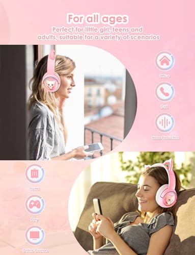 【Comfortable & Durable Design】Designed with ergonomics in mind, these bluetooth cat ears headphones have adjustable headbands padding band and soft breathable earpad. You will still feel comfortable even if you wear for a long time without pressure on your ears. They’re durable, too, so you can be confident they’ll last through any adventures.