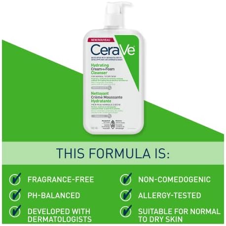 Be the first to review “CeraVe Hydrating Cream-to-Foam Facial Cleanser, One-Step Face Wash With Hyaluronic Acid & Amino Acid Complex, Gently Cleanses Skin, Non-Comedogenic, Fragrance-Free, Normal to dry skin, 562mL”